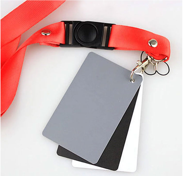 • 3 In 1 8.5 x 5.5cm White Black 18% Gray Color Balance Cards Digital Grey Card With Neck Strap For DSLR Camera